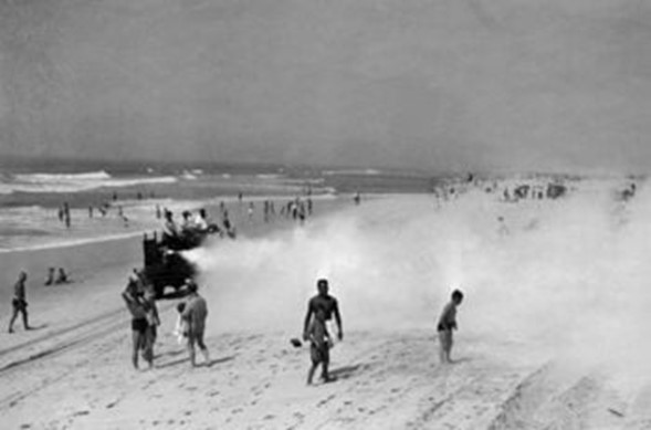 This is a beach in 1945. That giant cloud is DDT. Gamma-Keystone via Getty Images)